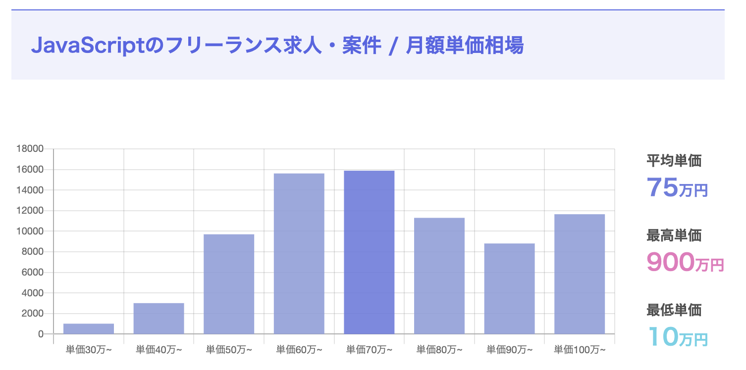 「フロントエンドの言語」と言えば真っ先に出てくるのがJavaScript。Web系のフリーランサーであれば、扱えない人はいないのではないかと思います。