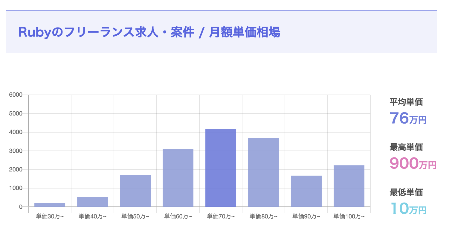 Pythonなどと比較すると案件数は少ない印象ですが、まだまだ需要があり、高収入が狙える言語です。